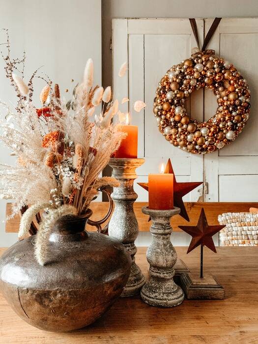 Het interieur van Arianne, mag alles behalve "bling bling" zijn. Alhoewel ze in de eerste jaren kozen voor een sobere kerststijl, zonder kleur is dat nu veranderd. Dit jaar heeft zij de stijl omgegooid en meer kleur in het leven gebracht: roestbruin, beetje bohostijl met wat vintage. Deze keuze werd gemaakt doordat het te donker in huis werd, ze miste echt kleur. Nu is het echt haar stijltje geworden, een echte HUIZE STAR, met de puntjes op de I!