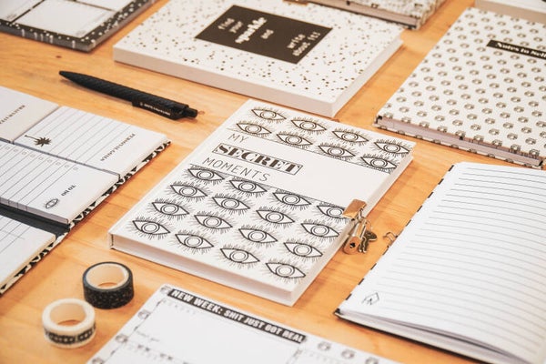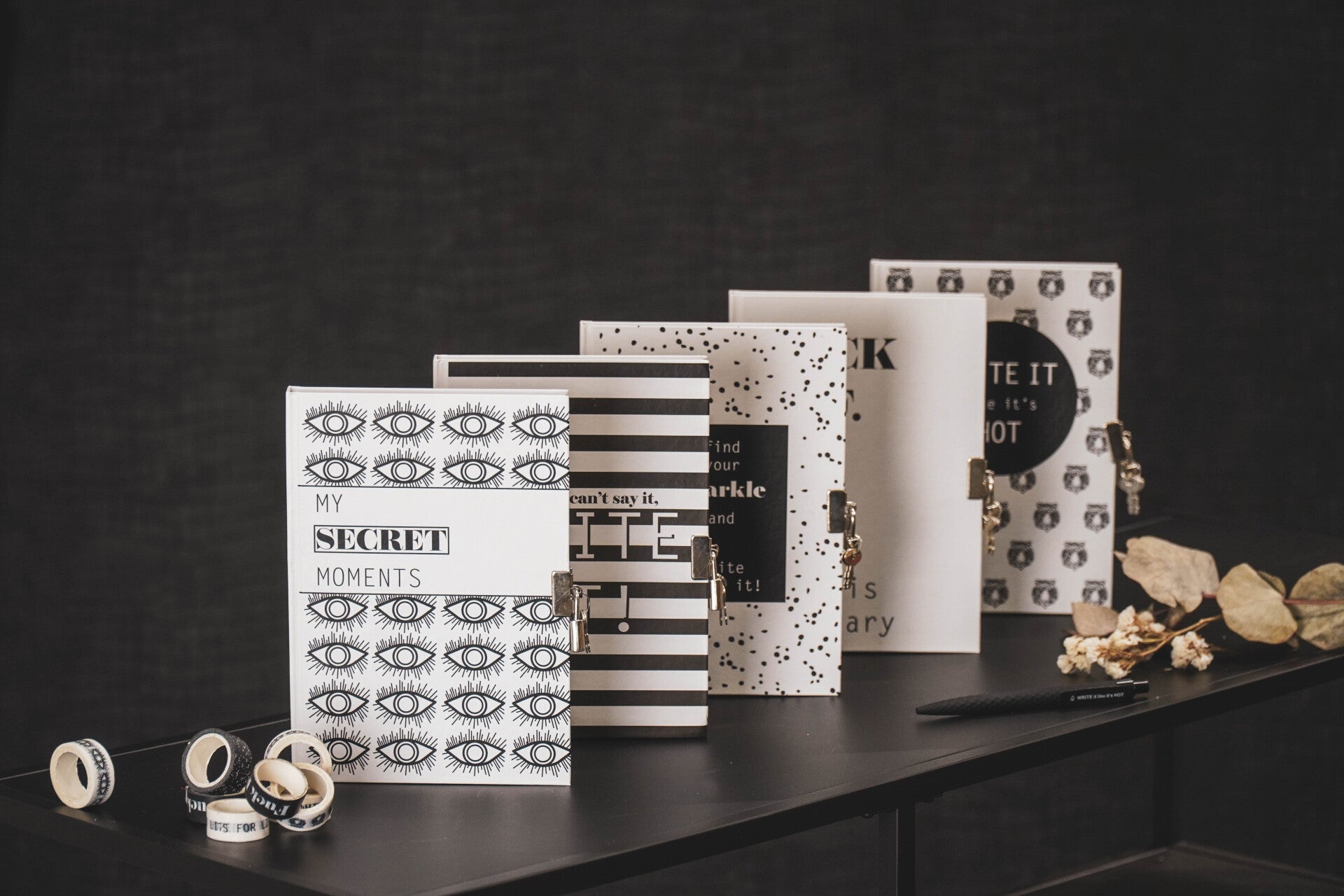 Wie zei dat dagboeken alleen voor kleine meisjes zijn? Al je geheimen en geheime notities zijn veilig met dit stoere zwart-witte dagboek met slot.